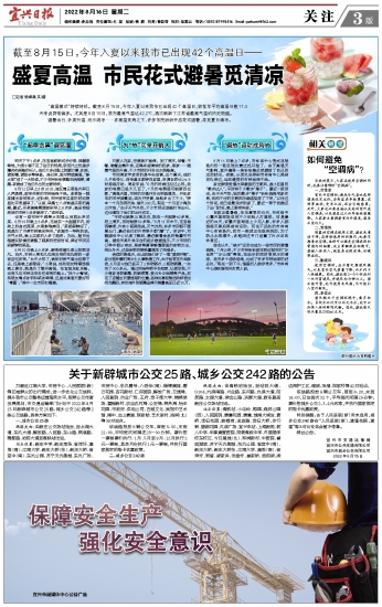 除此以外,“亲水”运动也成为一些市民的避暑选择。7月以来,不少市民纷纷前往附近城市的“水世界”“水公园”等地,在玩乐的同时享受水的清凉。我市多个游泳场地,也成了许多市民纳凉的好去处。“现在一到下午,馆里的人就非常多。”市体育中心游泳馆相关负责人说。