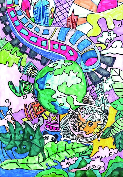 新能源的利用是未来发展新方向,设想建立未来的公共交通设施,收集太阳能、水能、风能等,为发展提供新动能。