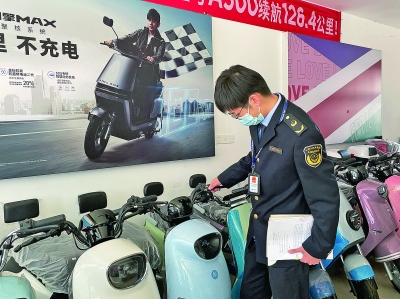 本报讯(记者良 言 通讯员毕枫) 12月15日,市市场监管局新建分局执法人员对辖区内电动自行车销售单位逐家开展监督检查,重点检查是否存在销售不符合国家标准和未获得CCC认证证书的电动车及乘员头盔,是否存在销售非法拼装、改装、加装电动车等违法违规行为,督促电动车经营单位落实质量安全主体责任,切实规范全市电动车销售行为。自10月中旬以来,市市场监管局各分局持续加强对电动车销售违法违规行为的打击力度,不断规范全市电动车市场秩序,扎实推进市场监管领域农村道路交通安全专项整治行动。