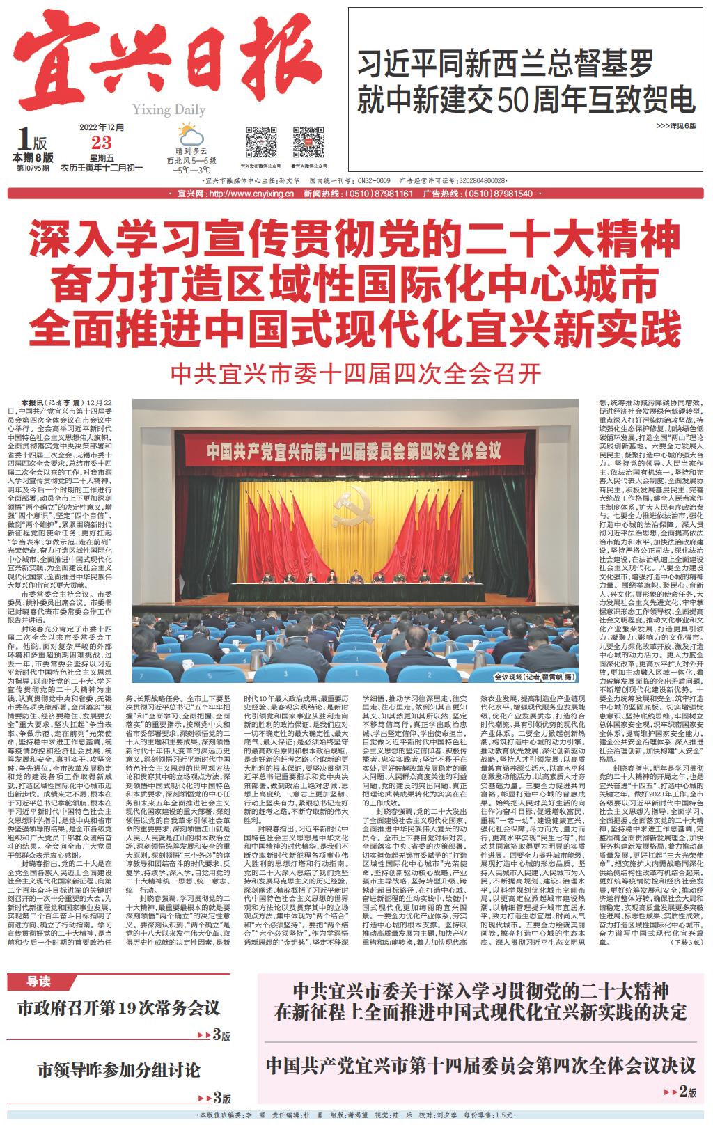 深入学习宣传贯彻党的二十大精神奋力打造区域性国际化中心城市 全面推进中国式现代化宜兴新实践