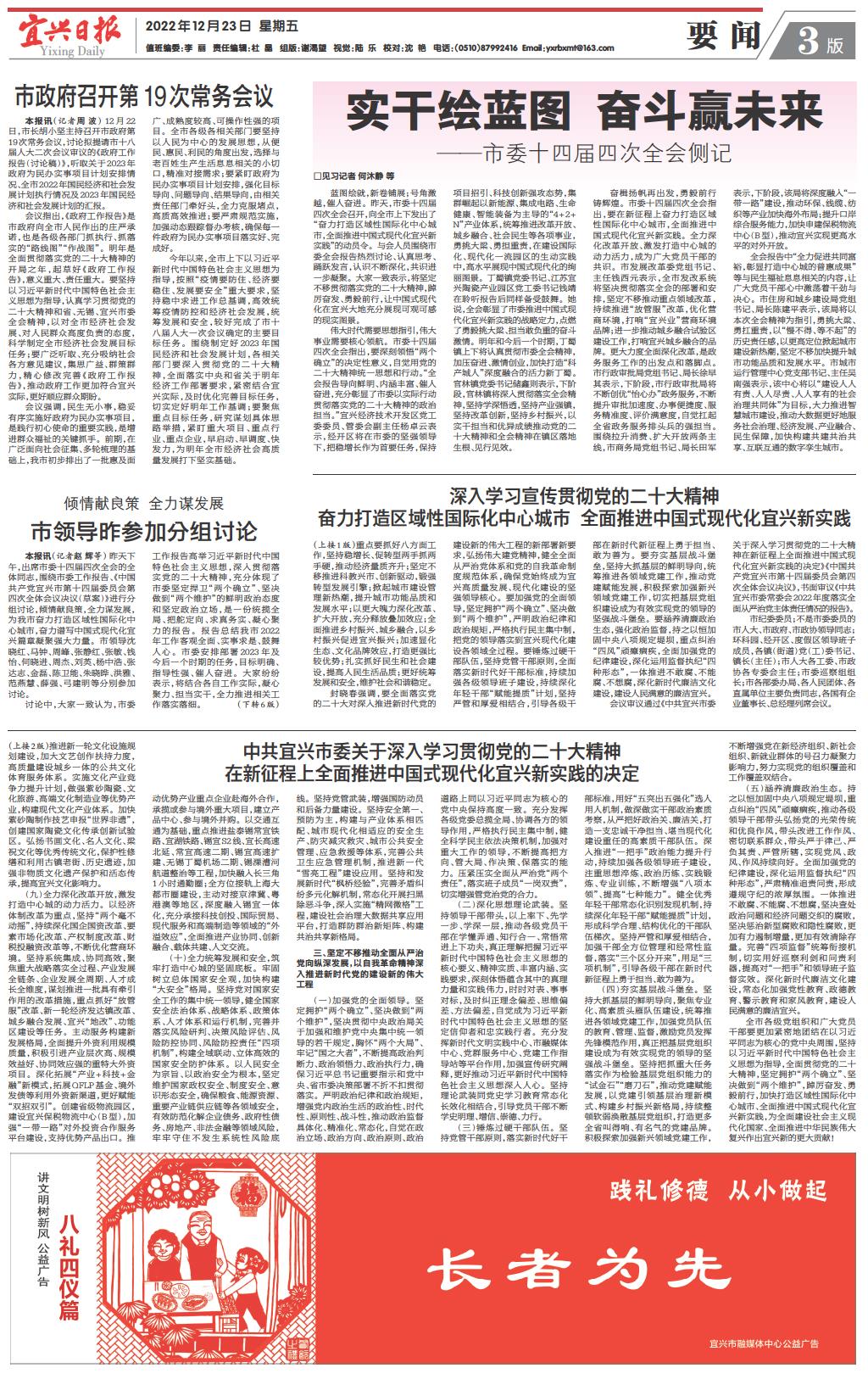 深入学习宣传贯彻党的二十大精神 奋力打造区域性国际化中心城市 全面推进中国式现代化宜兴新实践