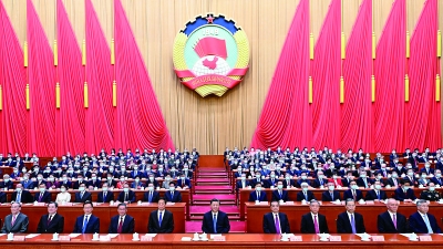 3月11日,中国人民政治协商会议第十四届全国委员会第一次会议在北京闭幕。这是习近平、李克强、栗战书、汪洋、李强、赵乐际、韩正、蔡奇、丁薛祥、李希、王岐山在主席台就座。(新华社记者 谢环驰 摄)