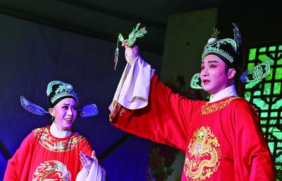 好戏连台 日前,丁蜀镇政府主办第十一届“文化陶都·幸福民生戏曲节”,邀请省演艺集团锡剧团演出《珍珠塔》《八珍汤》《玉蜻蜓》等13场大戏,让当地戏迷大饱眼福。 图为演出现场。 (通讯员 丁焕新 摄)