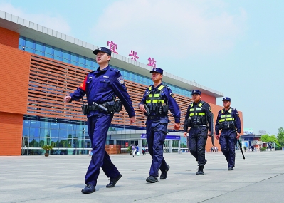 图为近日,联合巡逻队在对高铁宜兴站广场等重点区域加强巡逻防控。 (记者 蒋 瑜 摄)