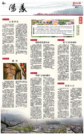 听着山泉潺潺、鸡鸣狗叫,看着山花烂漫,喝着杯中清香四溢的山里茶,韵儿的心中一片温情。(云 夏)