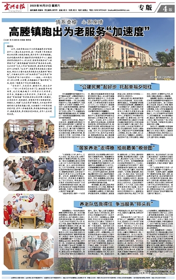 “居家养老可以看作一个采用居民互助、社会资源整合等方式打造的无围墙养老院。”高塍镇相关工作人员表示。这所无围墙养老院要想高效运营,必须搭好骨架。除了高塍镇养老护理服务中心的提档升级,高塍镇投资700多万元,对原高塍镇敬老院进行“大改造”,转变为高塍区域居家养老服务分中心,还引进专业服务团队,服务管理全镇所有村(社区)居家养老服务站和居家养老高龄老年人上门援助服务。同时,高塍镇通过适当资金奖补的方式,全面完成村(社区)居家养老服务站标准化创建。