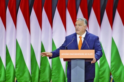 匈牙利总理欧尔班 连任青民盟主席 新华社布达佩斯11月18日电(记者陈 浩) 匈牙利执政党青民盟换届选举大会18日在布达佩斯举行,匈牙利总理、青民盟主席欧尔班作为唯一候选人连任青民盟主席。 欧尔班当选后发表讲话说,由于俄乌冲突、能源危机和通货膨胀,过去两年比以往任何时候都更加困难。他表示,政府已经达成为自己设定的目标,使匈牙利获得新的发展动力,实现显著增长。 欧尔班于1993年至2000年担任青民盟主席。2003年,欧尔班再次出任青民盟主席并连任至今。 图为11月18日,在匈牙利首都布达佩斯,欧尔班再次当选青民盟主席后发表讲话。 (新华社发)