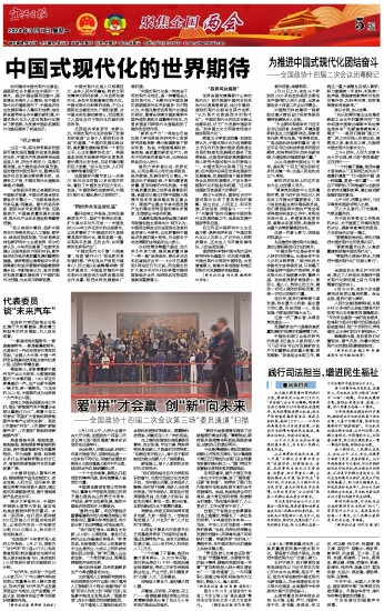 透过今年两会,国际社会对中国式现代化有了更加深刻的理解。独立自主、人民至上、和平发展、开放包容、团结奋斗……一个个“关键词”始终闪耀在中国的现代化发展进程之中,给其他发展中国家带来启迪。