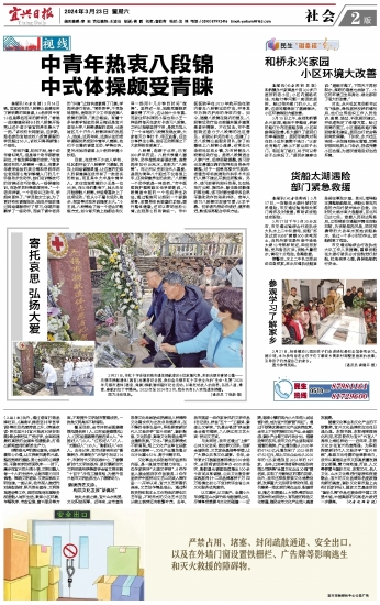 “劲而不僵,松而不泄,每个动作看似简凡,但是每个动作都要做到位,才能发挥保健的功效。”在宜城成校的八段锦第一课上,有着多年教学经验的吴云梅和宗丽萍两位老师耐心地讲解着入门的几个手型和步伐动作,她们在讲解技巧的时候还会巧妙融入一些保健知识,在场学员听得津津有味。“一个老师讲课,一个老师纠正动作,学起来更快了。”学员陆女士说,为了更好吸收课程知识,她在开班前通过网络课程进行了预习,依葫芦画瓢学了一些动作,而线下课中老师的“纠偏”让她快速掌握了门道,学起来游刃有余。“简单易学,不受场地限制,是现在不少工作族追捧八段锦的原因。”吴云梅说。有着十多年教学经验的吴云梅还是宜兴老年大学八段锦课程的老师,也是城区几个户外八段锦团体的发起人,她说,这两年来,这类以往的老年课程突然受到中青年人青睐,他们不仅喜欢课堂互动、学得也快,更关注她在课堂上介绍的保健小妙招。