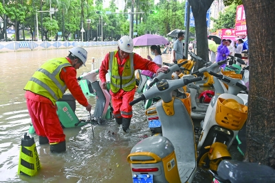 图为5月19日,工作人员在南宁东葛路开展排水作业。(新华社记者 陆波岸 摄)
