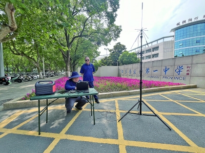 6月4日,技术人员在考点开展电磁环境专项监测。(记者 吴虹娴 摄)