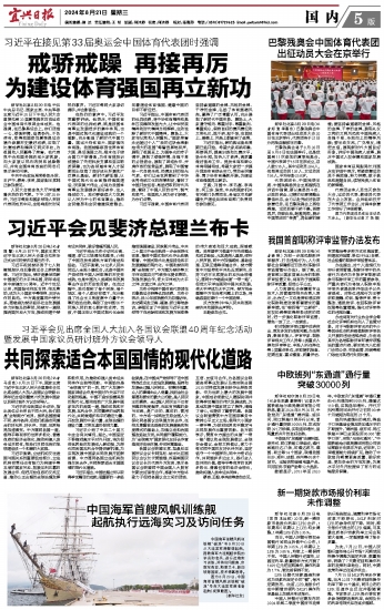 新华社北京8月20日电 中共中央总书记、国家主席、中央军委主席习近平20日下午在人民大会堂接见第33届夏季奥林匹克运动会中国体育代表团全体成员。他强调,在巴黎奥运会上,你们团结一心、顽强拼搏,奋勇争先、不负使命,取得我国参加夏季奥运会境外参赛历史最好成绩,实现了比赛成绩和精神文明双丰收,为祖国和人民赢得了荣誉。他代表党中央和国务院欢迎大家凯旋,向大家致以热烈祝贺和诚挚慰问,并向全国体育战线的同志们表示亲切问候。