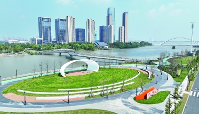 日前,位于宜城梅林地块西北侧的梅林公园正式对外开放,成为城东一处新地标。据了解,该公园总用地面积约37亩,在原驳岸的基础上进行改造,依托大溪河滨水生态资源,打造岸线优美、群落丰富的滨水湿地空间。图为10月8日拍摄的梅林公园美景。(记者 翟霄帆 摄)