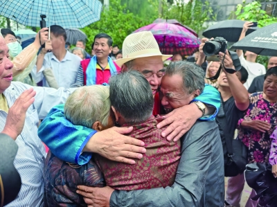 本报讯(见习记者宋浣竹文/摄) 10月1日,国庆佳节,陶都处处洋溢着欢乐的气氛,居住在屺亭街道虞山村的71岁老人钱小甫,也迎来了家族的大喜事。当天,他失散64载的弟弟历经1500多公里的长途跋涉终于重回故乡,与亲人共叙团圆。