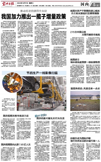 “我们既重视发力解决当下存在的困难和问题,更关注、更重视解决经济中长期发展中的重大问题,强化打基础、利长远、可持续、稳中有进,推动高质量发展。”郑栅洁说,下一步,我们将和各部门、各地区一起,全面贯彻、加快落实党中央、国务院决策部署,系统落实一揽子增量政策,打出一套组合拳,打通政策落实中的堵点卡点,扎实推动经济稳定向上、结构不断向优、发展态势持续向好。