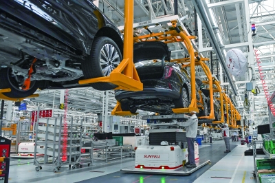大图为10月8日,工人在位于吉林长春的一汽红旗制造中心繁荣厂区总装车间装配车辆。