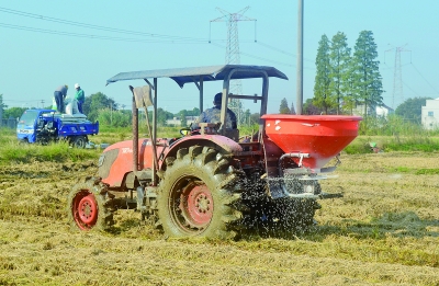 当下,正值秋收秋种关键期。11月5日,杨巷镇西溪村一种田大户组织机械和人员,为2000亩小麦田抢施基肥。基肥对小麦的生长发育至关重要,可提高土壤肥力,满足小麦生长初期的养分需求。