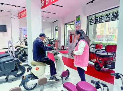 “政府补贴500元,旧车抵扣500元,我置换一辆电动自行车只花了2099元,真的很实惠!”市民吴阿姨说。在位于城区太滆东路的雅迪电动自行车销售门店,负责人刘飞说,这个时段往年都是电动自行车销售的淡季,但在补贴活动的推动下,今年前来购车的市民显著增多。作为首批接入活动的门店,截至记者采访时,该店已经为1000余位市民完成了以旧换新,日均换购约20辆,单日换购量最高时超60辆。同样热闹的景象,也出现在欧派电动自行车销售门店。记者发现,店铺显眼位置贴有政府以旧换新的标识,前来咨询的市民也不少。“往年这个时候,平均一天只能成交一两单,有时候单日成交量为零。但最近,平均每天都有十几单的成交量!”该店工作人员石春兰说。