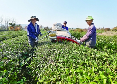 图为日前,工作人员正在修剪茶树。(记者 蒋 瑜 摄)