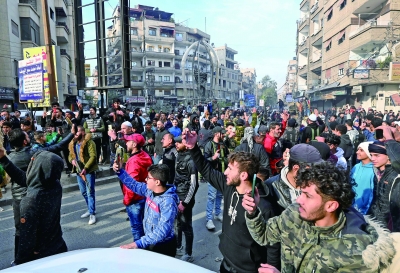 图为12月8日,当地民众聚集在叙利亚大马士革街头。