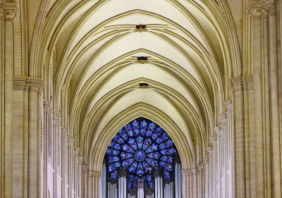 12月8日在重新开放仪式上拍摄的巴黎圣母院内景。 (新华社记者 高 静 摄)