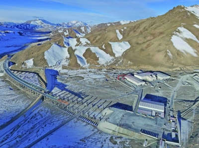 大图为在新疆和静县拍摄的乌尉高速公路天山胜利隧道出口及建设中的公路(2024年12月25日摄,无人机照片)。