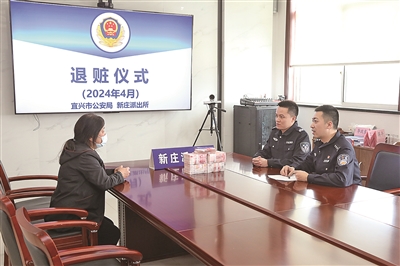 2022年5月至7月期间,受害人董某遭受冒充外国军人类型的“杀猪盘”电信网络诈骗。由于该案资金流向复杂,涉及几名嫌疑卡主并非传统类型,新庄派出所第一时间开展支付冻结后无法采取强制措施。派出所辅警堵煜康没有放弃,尽管过程中多有碰壁,但经过两年坚持不懈的劝投退赃,几名嫌疑卡主终于愿意配合退赃,在2024年4月15日举行的退赃仪式上,董女士终于拿回了72万元被骗钱款,并向所内民辅警赠送锦旗表示感谢。