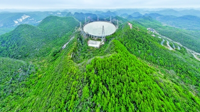 图为2月18日拍摄的“中国天眼”(无人机全景照片,维护保养期间拍摄)。(新华社记者 欧东衢 摄)