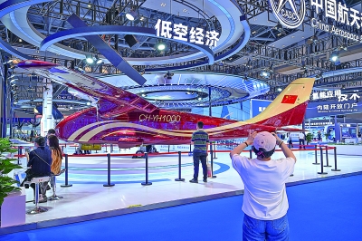 第七届中国西部国际投资贸易洽谈会于5月22日在重庆国际博览中心开幕,展会上有关低空经济的各类企业全面发力,引来参观者关注。图为5月22日,观众在西洽会展厅参观彩虹—YH1000无人物流机。(新华社记者 陈 诚 摄)