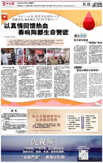 其中,6月13日,市红十字会血站开展了“献血荣光 感恩有你”感恩活动,邀请了40名献血志愿者参与。活动中,为60周岁献血志愿者举行了“退休”仪式,还为在“世界献血者日”当天过生日的献血志愿者送上了专属祝福和蛋糕,仪式感十足。“这样过生日,太有纪念意义了!希望大伙都能加入我们献血的队伍,一起用热血给需要帮助的人送上‘生命礼物’!”当天拿到生日蛋糕的献血志愿者刘思琦说。与此同时,6月12日至14日,宜兴陶都半岛酒店等城市地标开启“点亮生命”灯光秀,启动2025年“世界献血者日”公益亮灯行动;6月14日,热血集市、热血同行健康跑等活动分别在宜兴万达广场、龙背山森林公园等处举行,各献血屋常规开放,并同步进行慰问、赠礼等。