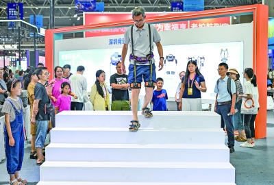 图③为7日,观众在体验外骨骼机器人产品。(新华社发)