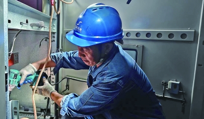 7月30日凌晨,在宜兴八佰伴购物中心的配电室里,市宜能实业有限公司施工人员正紧张调试设备,保障夏季用电高峰期购物中心商户安全用电。(见习记者 张 蔷/文 记者 邹赟翀/摄)