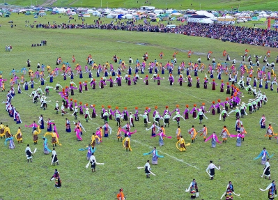 大图为当日,在理塘县多旺塘赛马场拍摄的锅庄表演。
