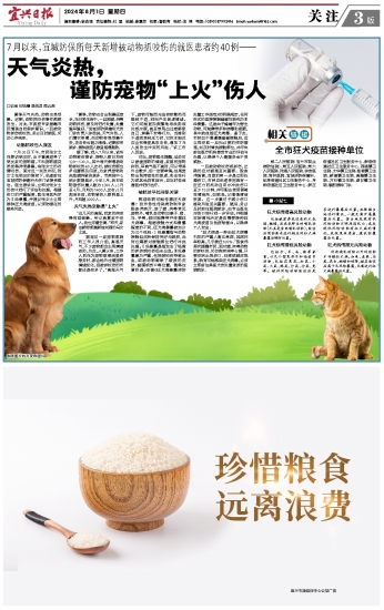 7月以来,宜城防保所每天新增被动物抓咬伤的就医患者约40例——~~~