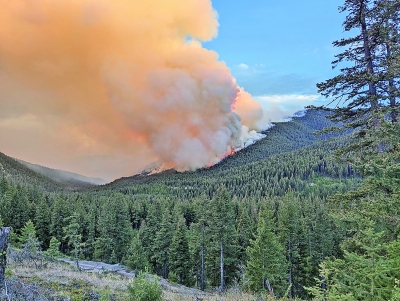 8月2日在加拿大不列颠哥伦比亚省坎卢普斯市以西约100公里处拍摄的野火情况。(新华社发)
