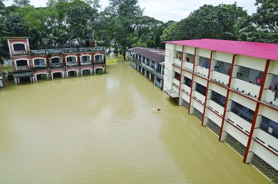 图为8月24日在孟加拉国费尼拍摄的遭洪水侵袭的学校。 (新华社发)