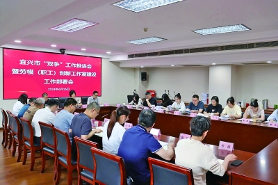 本报讯 近日,市总工会召开“双争”工作推进会暨劳模(职工)创新工作室建设工作部署会,深入学习贯彻习近平总书记关于推进产业工人队伍建设改革、培育大国工匠的重要指示精神,全面落实无锡市“双争”工作推进会要求,研究部署重点任务,推动全市“双争”工作迈向纵深。市总工会党组成员、副主席朱明婷主持会议并讲话,各镇(园区、街道)总工会专职副主席、市总工会相关职能部室负责同志参加会议。