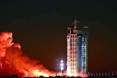 11月25日7时39分,我国在酒泉卫星发射中心使用长征二号丙运载火箭,成功将四维高景二号03、04星发射升空,卫星顺利送入预定轨道,发射任务获得圆满成功。(新华社发)