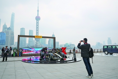 图为3月16日,人们在北外滩国客中心码头展示的赛车前拍照。 (新华社记者 王 翔 摄)
