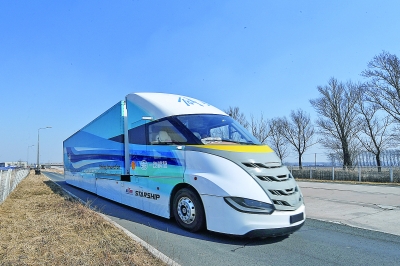 3月19日,一汽解放星域概念卡车在吉林长春开启路试工作。该车是一汽解放与壳牌联合打造的概念卡车,搭载解放自主混合动力系统,集成化智能座舱中配备L2级智能驾驶、电子环视系统等多项功能。车辆采用的低风阻、低油耗、低碳减排等设计,未来将会应用到量产车型中,助力道路运输行业能效升级与绿色转型。图为19日,星域概念卡车进行路试。(新华社记者 张 楠 摄)