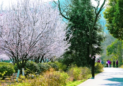 图为3月19日拍摄的一路繁花和市民欣赏樱花的场景。