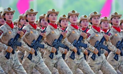 2025年9月3日,纪念中国人民抗日战争暨世界反法西斯战争胜利80周年阅兵式现场,英姿飒爽的女民兵方队步伐铿锵走过天安门广场,光荣接受习近平总书记检阅,接受党和人民检阅。